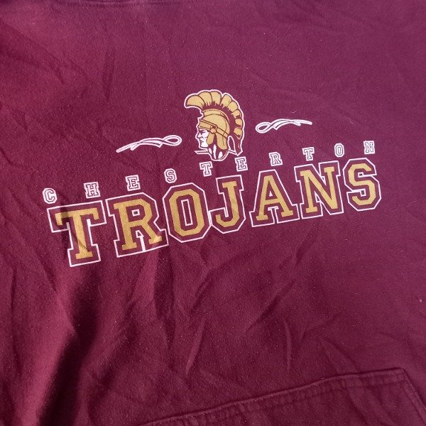 Buzo "Trojans" en color Bordo con letras en color amarillo.